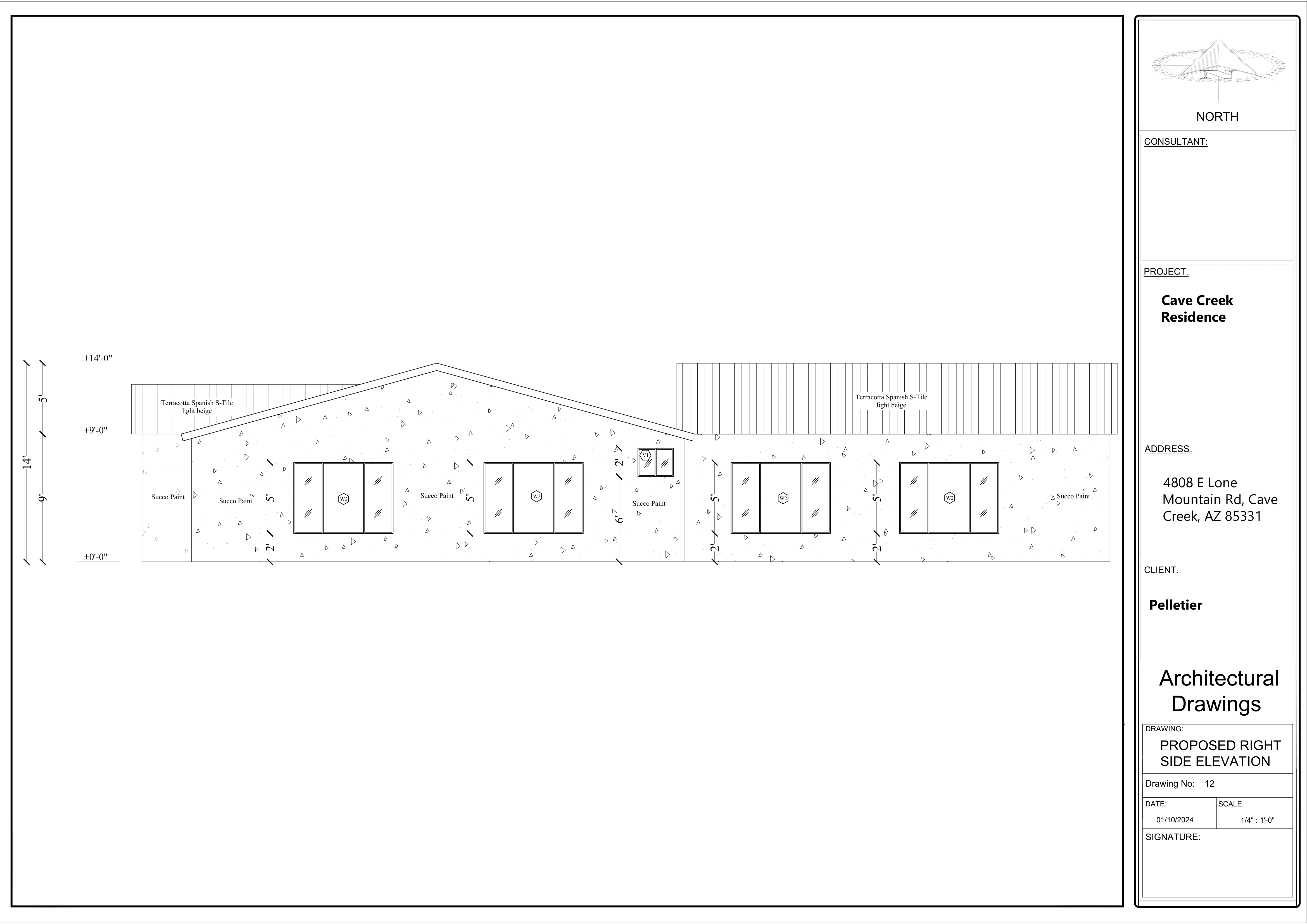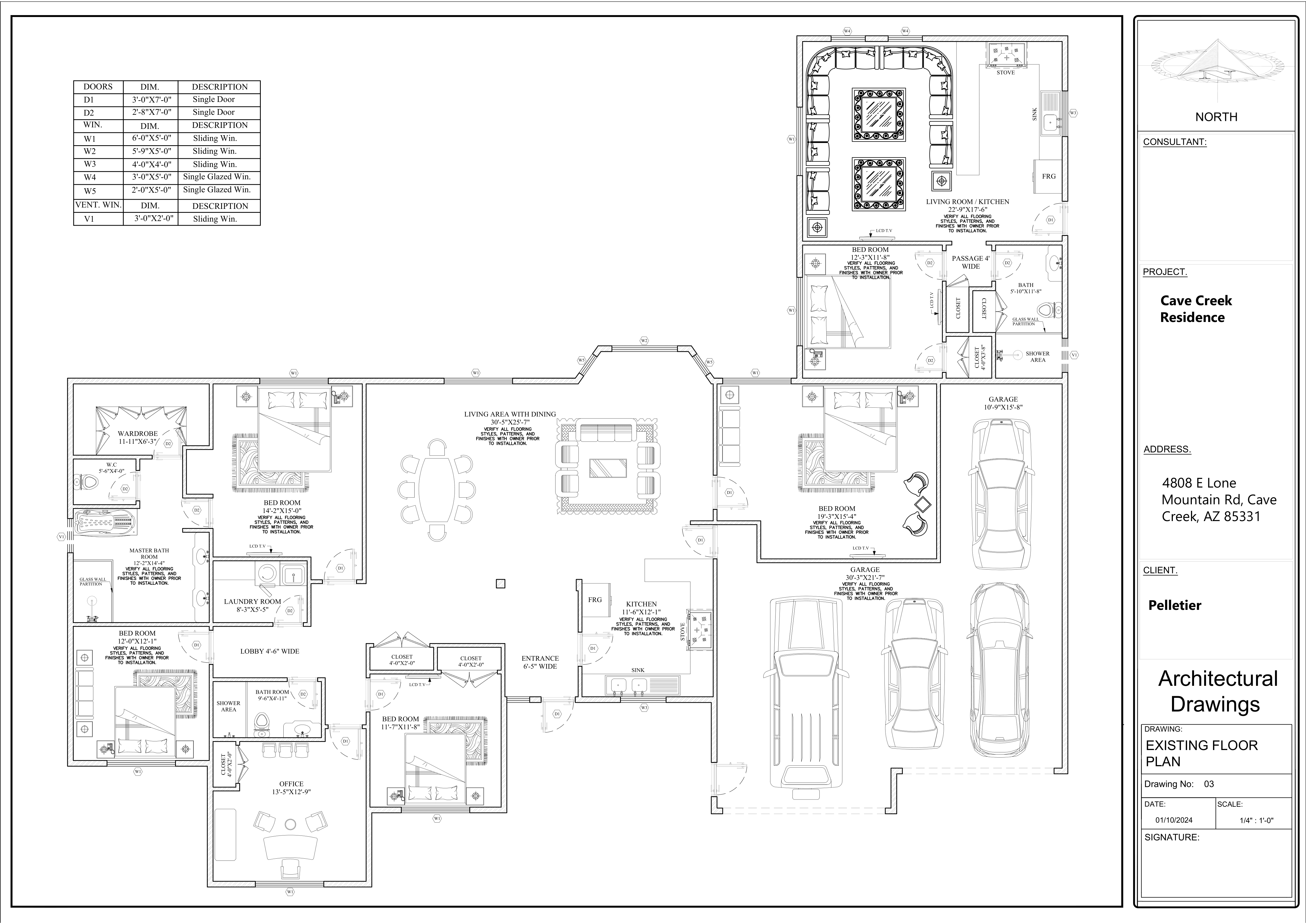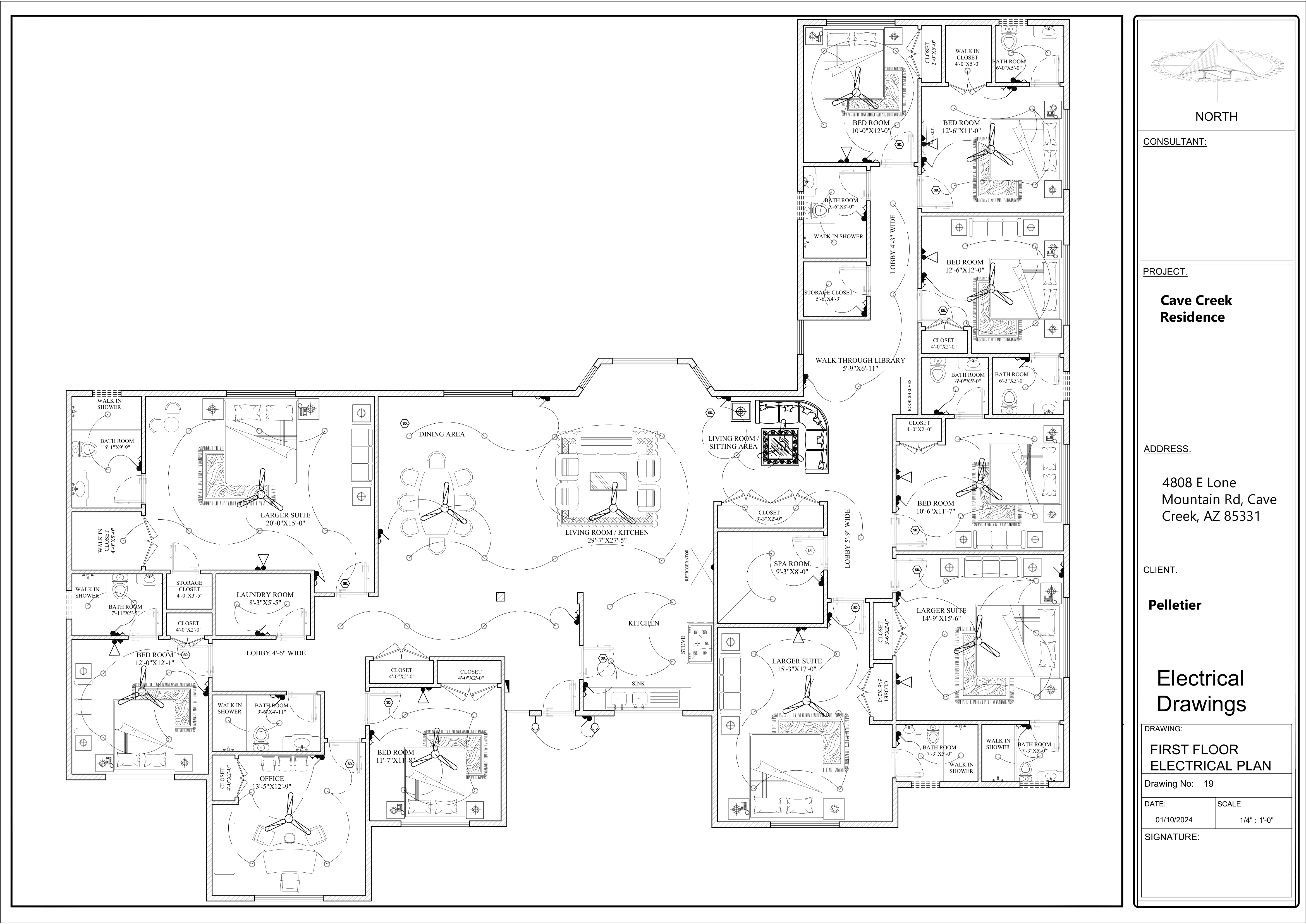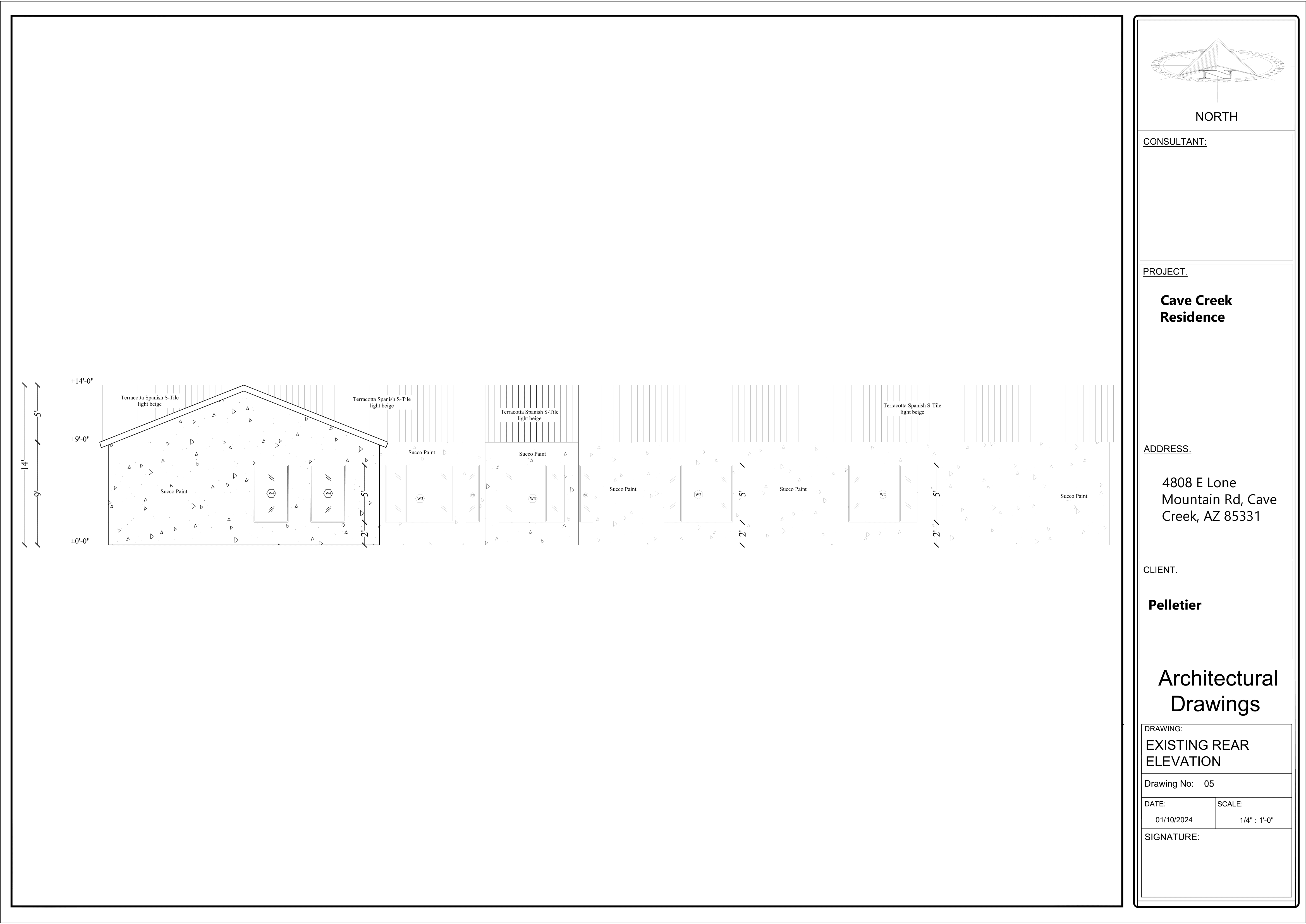 This project was developed for the Pelletier family in Cave Creek, focusing on detailed architectural drawings for a residential home. The design emphasizes harmony with the natural desert landscape while offering modern comforts and spacious living. Every detail—from layout to structural articulation—was thoughtfully planned to ensure both functionality and elegance, creating a refined living experience in this serene location.