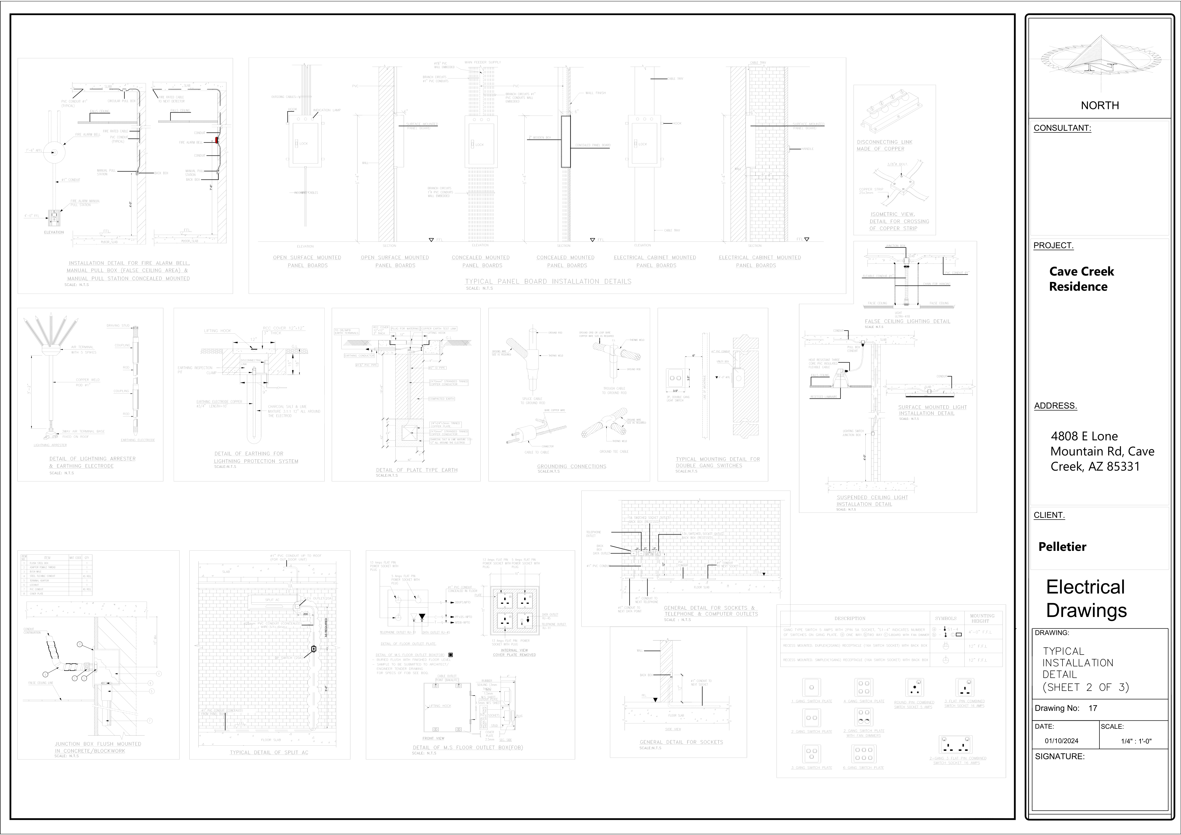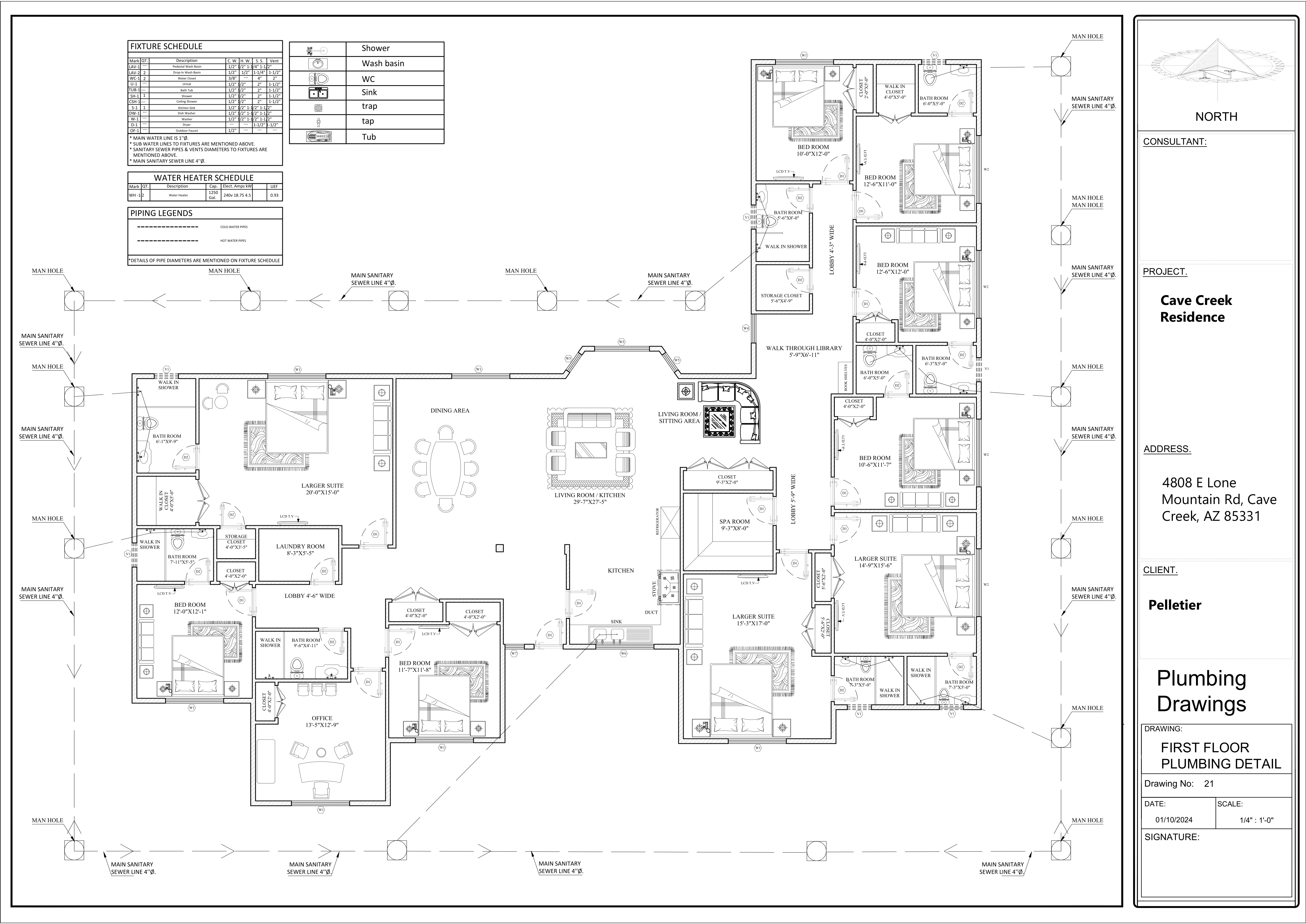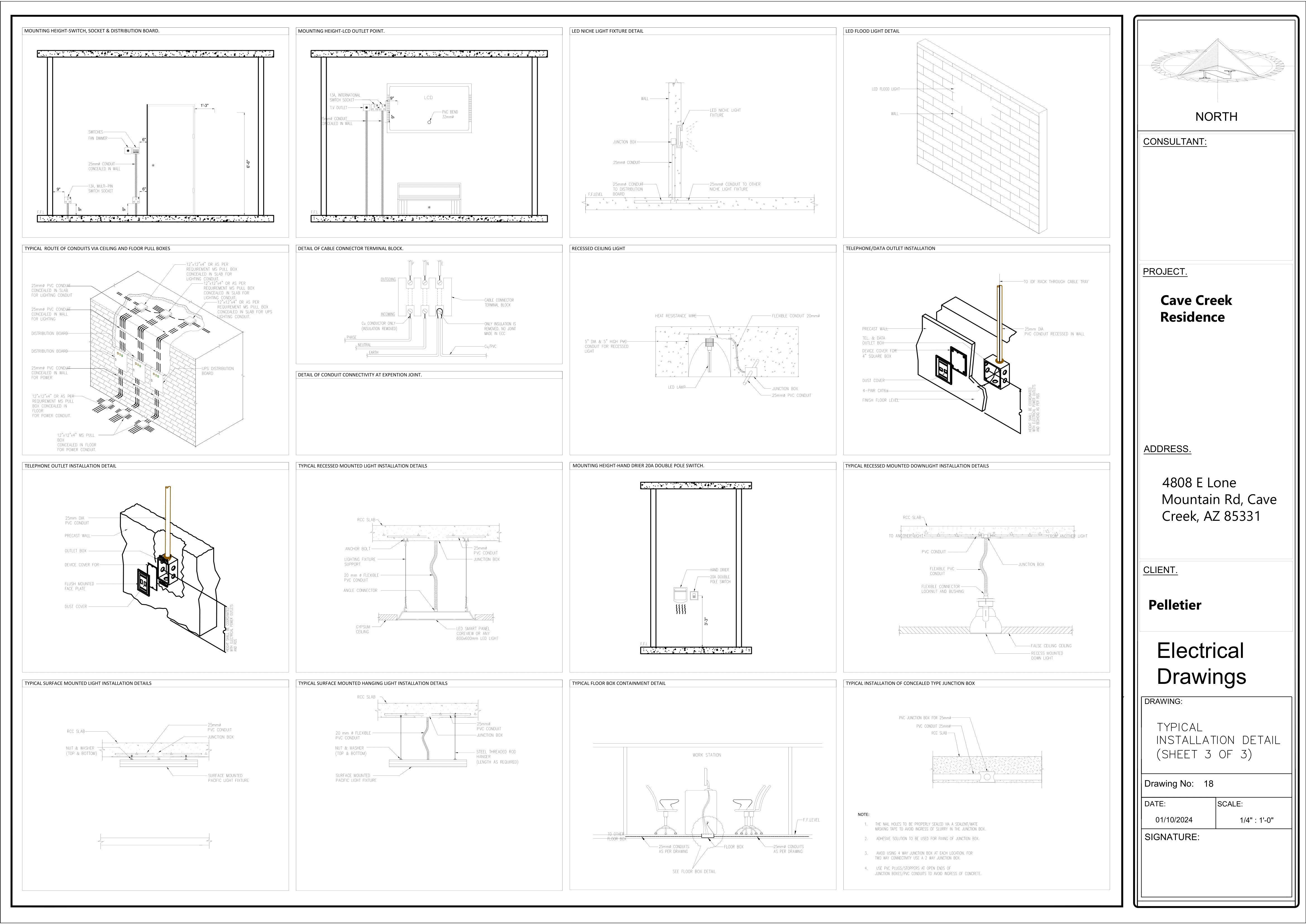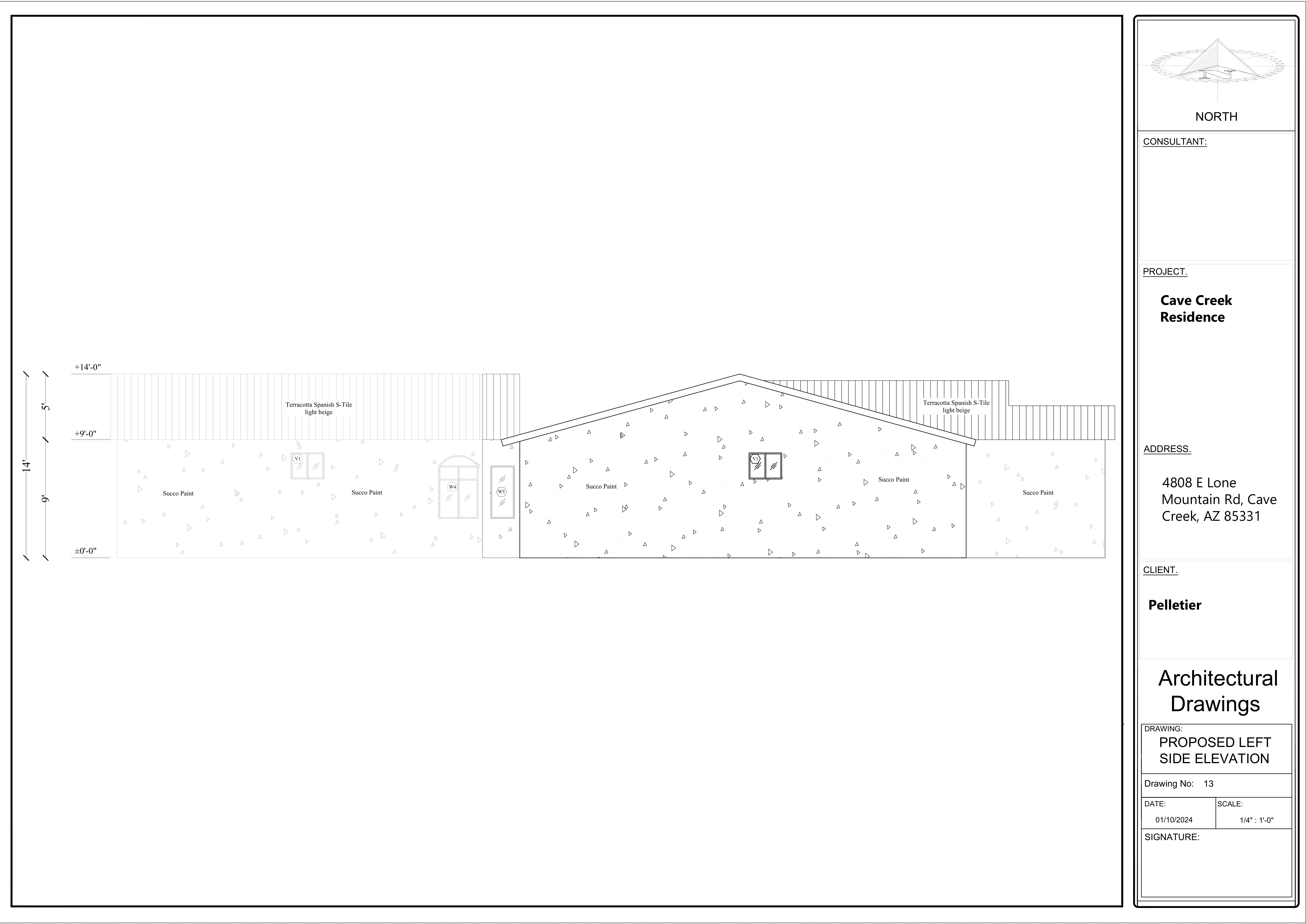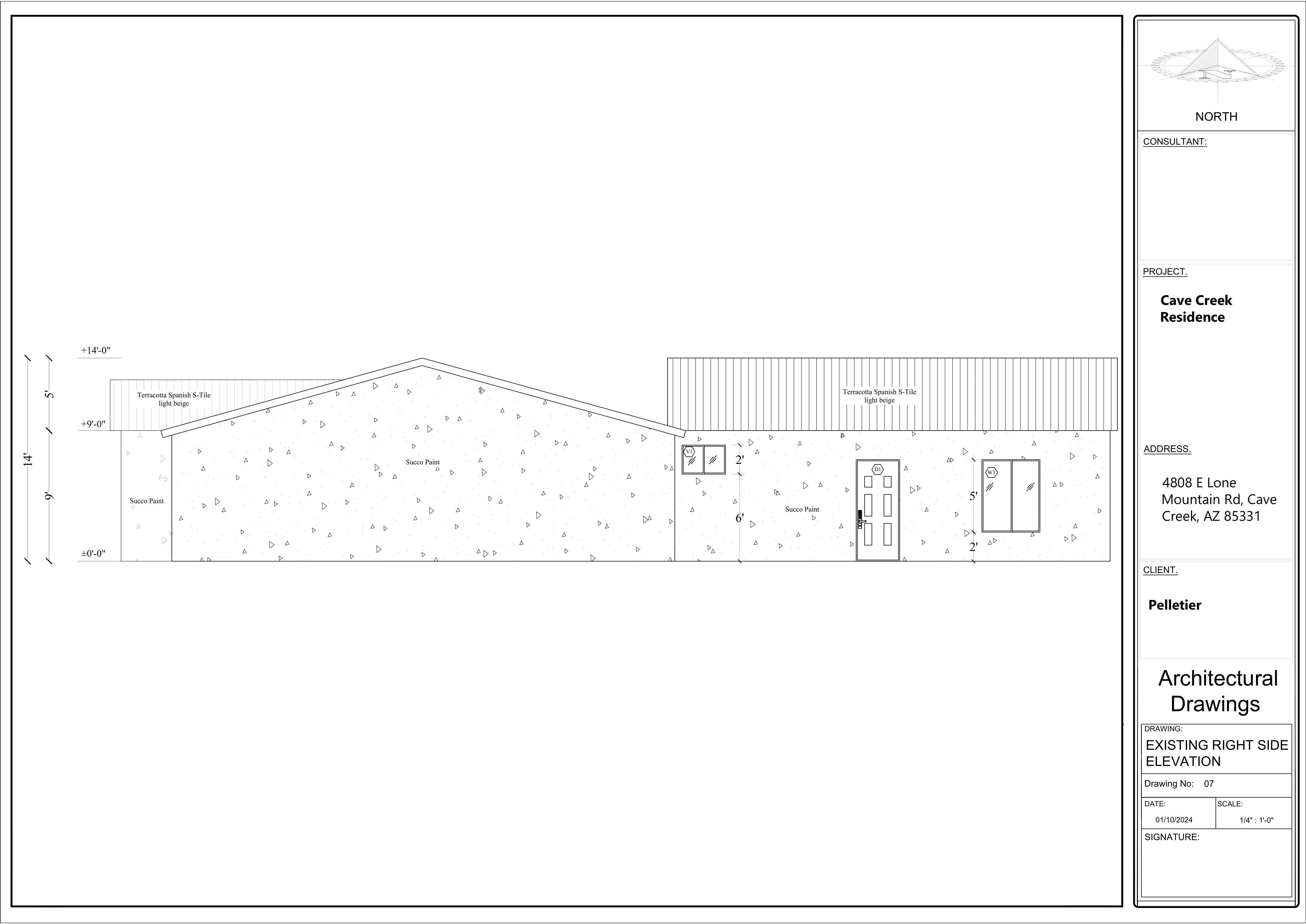 This project was developed for the Pelletier family in Cave Creek, focusing on detailed architectural drawings for a residential home. The design emphasizes harmony with the natural desert landscape while offering modern comforts and spacious living. Every detail—from layout to structural articulation—was thoughtfully planned to ensure both functionality and elegance, creating a refined living experience in this serene location.